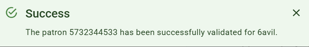4. If the patron is successfully validated, you will get a pop-up that says so