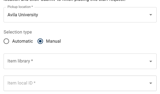 Most of the time, you will use Automatic. Use Manual to request a specific item (SEE BELOW)